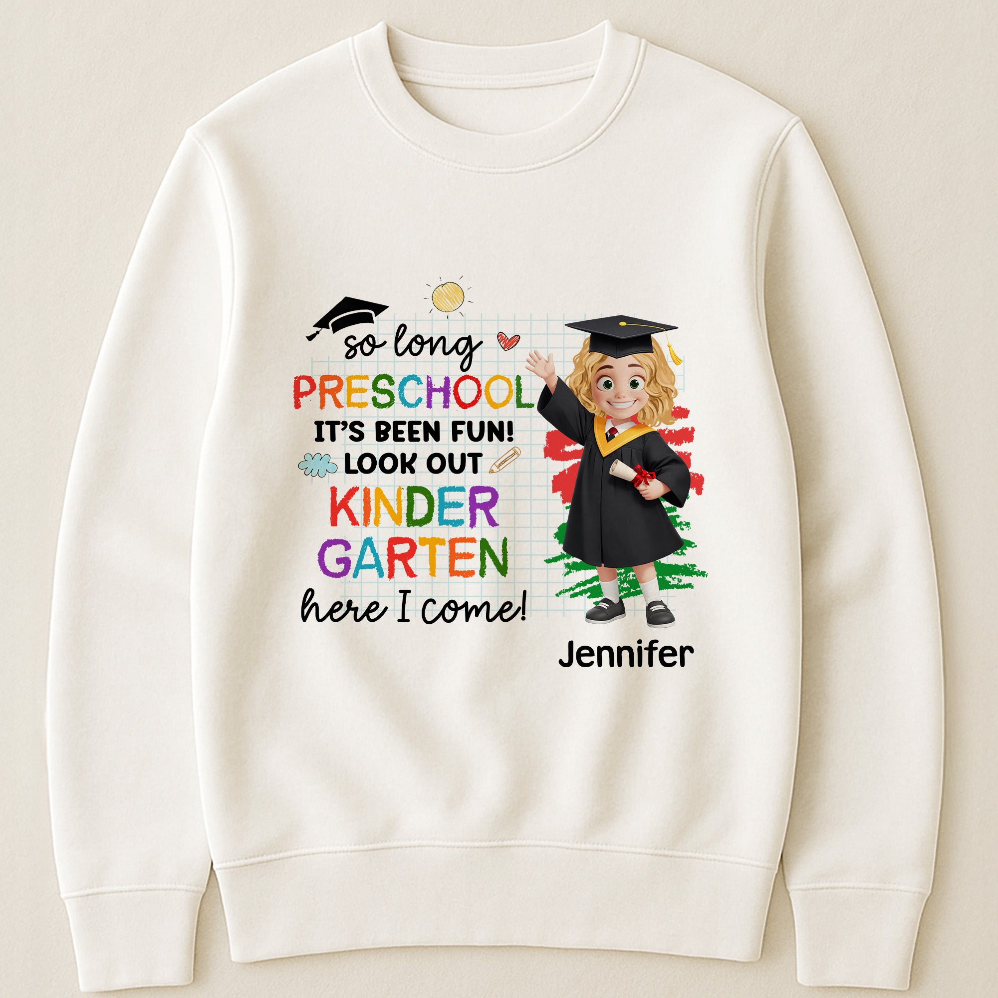 Perfect for graduation ceremonies, birthdays, Christmas, anniversaries, or any occasion you want to celebrate this significant step in education. It conveys the unspoken excitement of saying goodbye to preschool and embracing kindergarten. A picture might be worth a thousand words but seeing your child wear this shirt says so much more. So why wait? Give your child an unforgettable token of their preschool graduation. Make the big day even more special by gifting them a Pre K Graduation – Personalized Shirt. It’s more than just a gift, it’s a keepsake. Let’s create memories together. Purchase now!